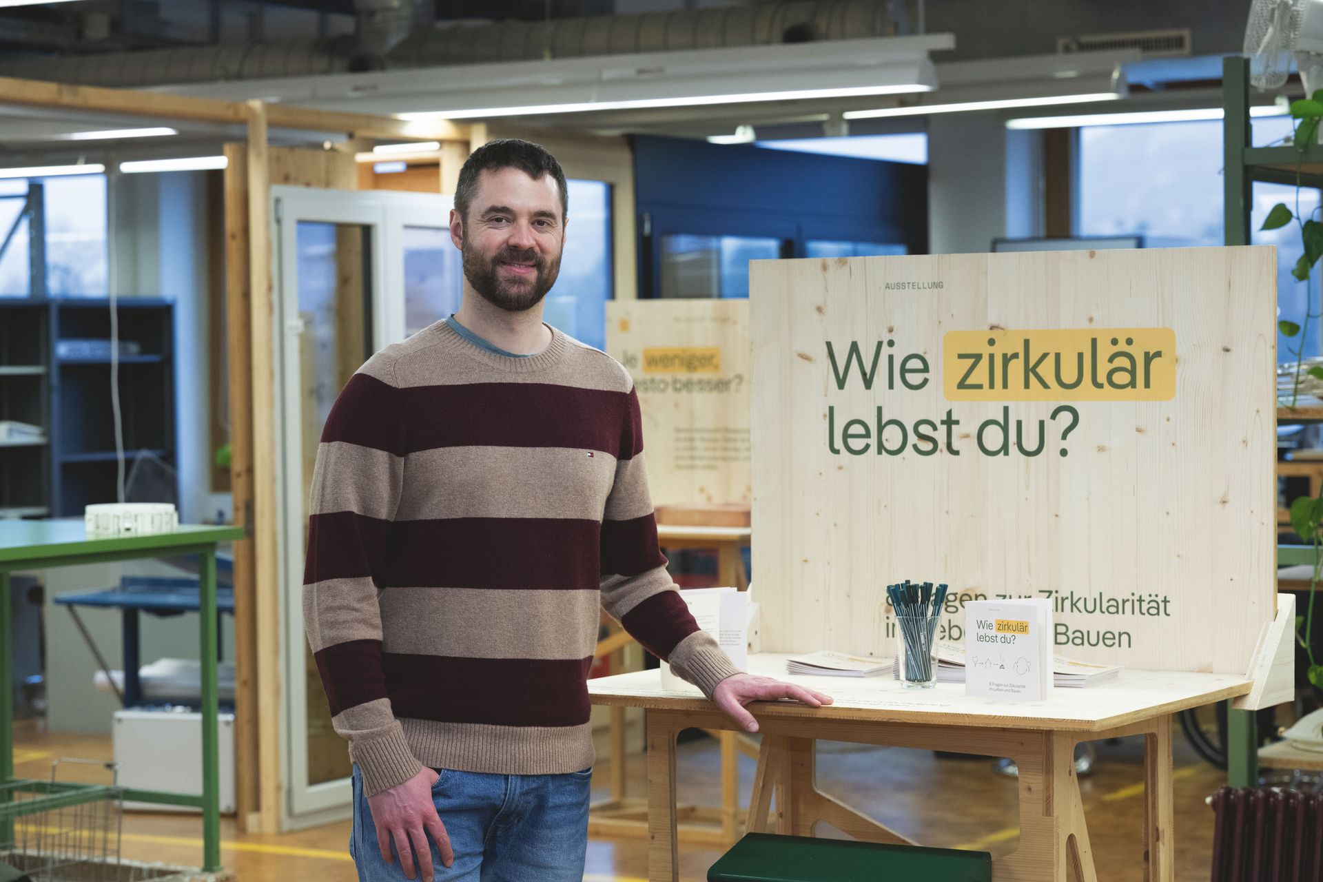 Die Ausstellung soll vor allem ein Denkanstoss sein und eine Möglichkeit, dass sich jeder und jede mit diesem Thema auseinandersetzen kann. Zirkuläres Bauen hat viele Dimensionen und ist komplex. Mit dieser Ausstellung möchten wir einen Einstieg und eine Orientierung bieten, damit sich Menschen besser im Thema zurechtfinden. Wenn sie mit einem positiven Gefühl und mit einem neuen Blickwinkel die Ausstellung verlassen, dann ist das wunderbar.